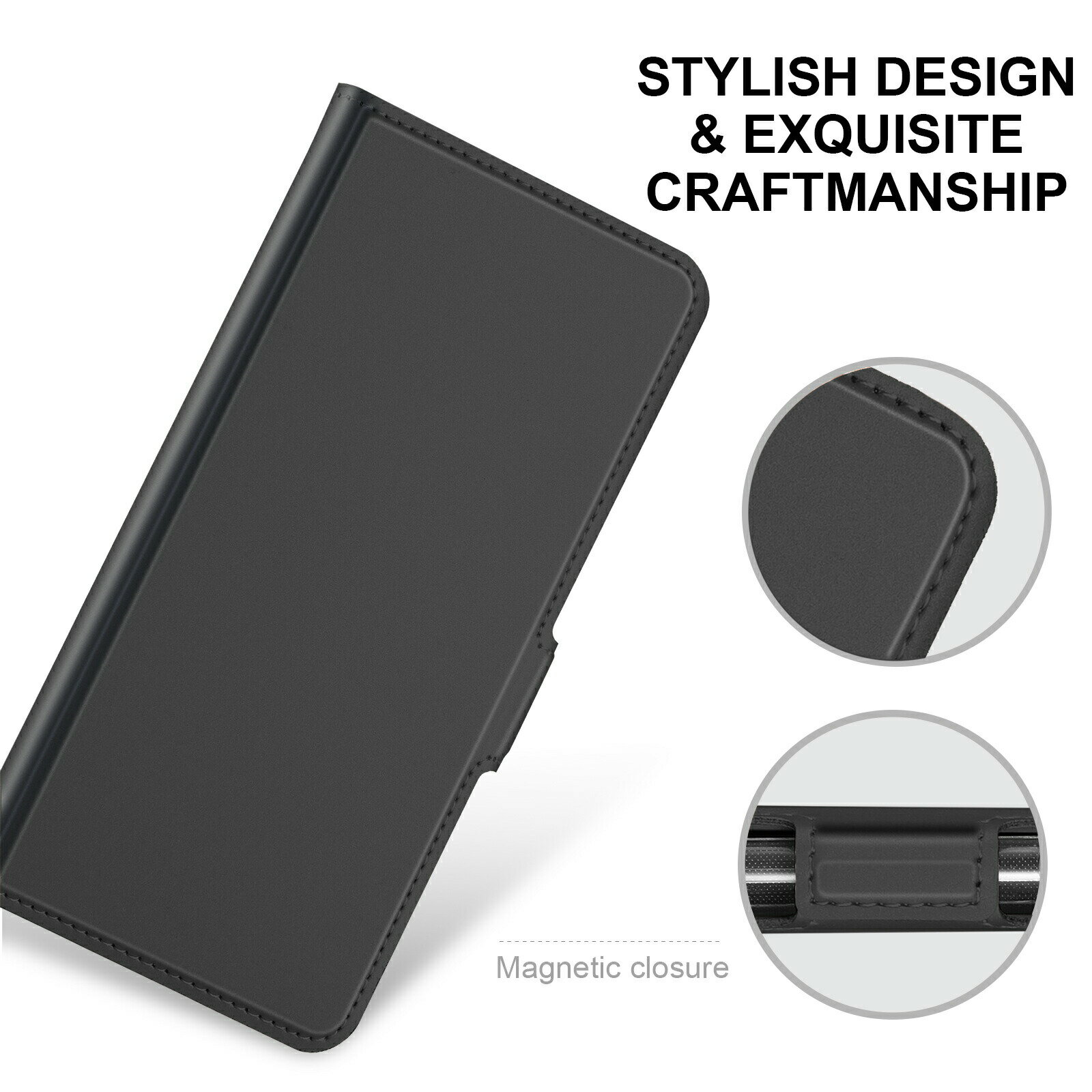 サラサラとした生地感の高級PUレザーを使用したシンプルな手帳型レザーケース。