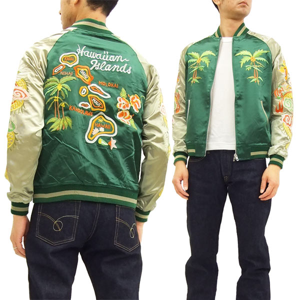 ジャパネスク スカジャン 3RSJ-502 ハワイ柄 メンズ スーベニアジャケット グリーン 新品