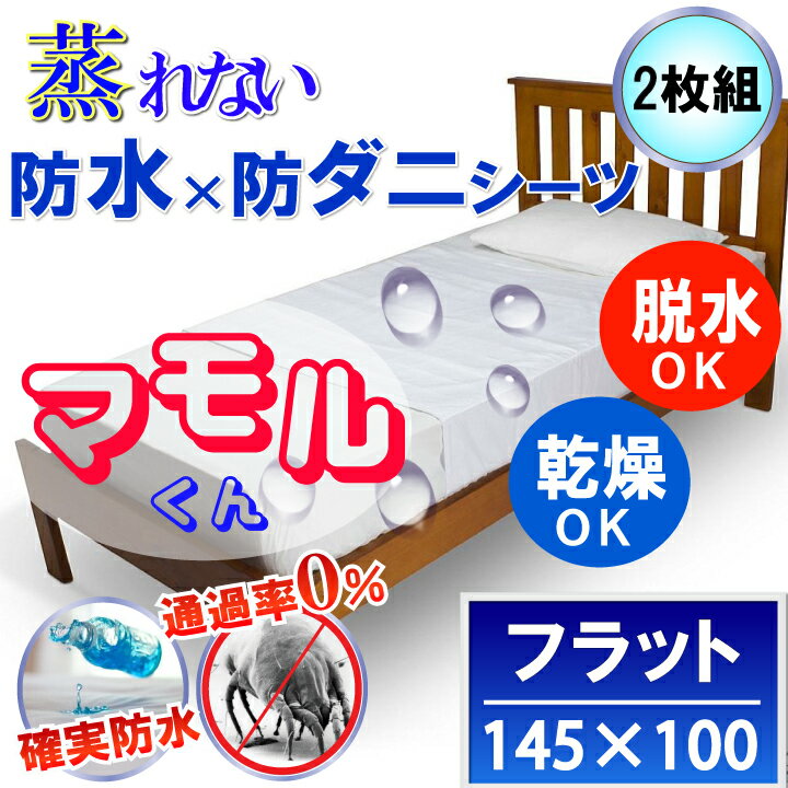【2枚組】蒸れを逃がす 防水防ダニフラットシーツ マモルくん 防水敷パッド 横シーツ(145x100cm)【あす楽】【防水防ダニW効果】で寝汗、ニオイ、汗ジミ、黄ばみ、カビ、アレルギー対策おねしょシーツ 介護シーツ 防水パッド
