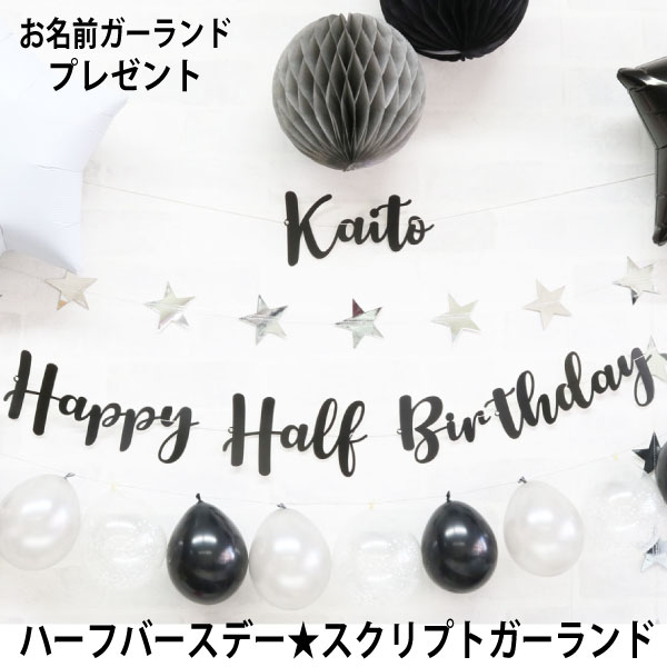 新着!メール便可!Happy Half Birthdayガーランド お名前やメッセージがカスタマイズできちゃうパーティーガーランド!ブラックメッセージ。スクリプト。ハーフバースデー お誕生日 名入れ 一升餅 お食い初め 1歳 ファーストバースデー お名前ガーランドプレゼント
