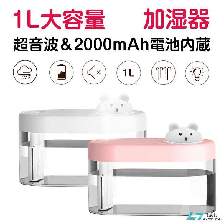 【最大10時間加湿】2020最新型 超音波式 加湿器 アロマ式 1000ml 超大容量 卓上 加湿器 USB 充電式 ミニ加湿器 静音 車載用 LEDランプ付き 空焚き防止 次亜塩素酸水対応 自動停止機能